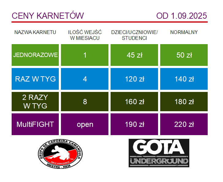 karnet open na Capoeira + wszystkie sztuki walki w naszej Akademii, bez limitu wejść na cały miesiąc! :)